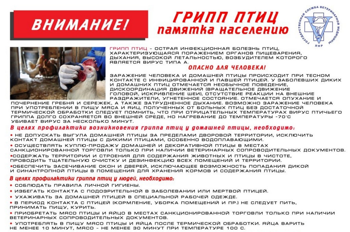 ГРИПП ПТИЦ памятка населению