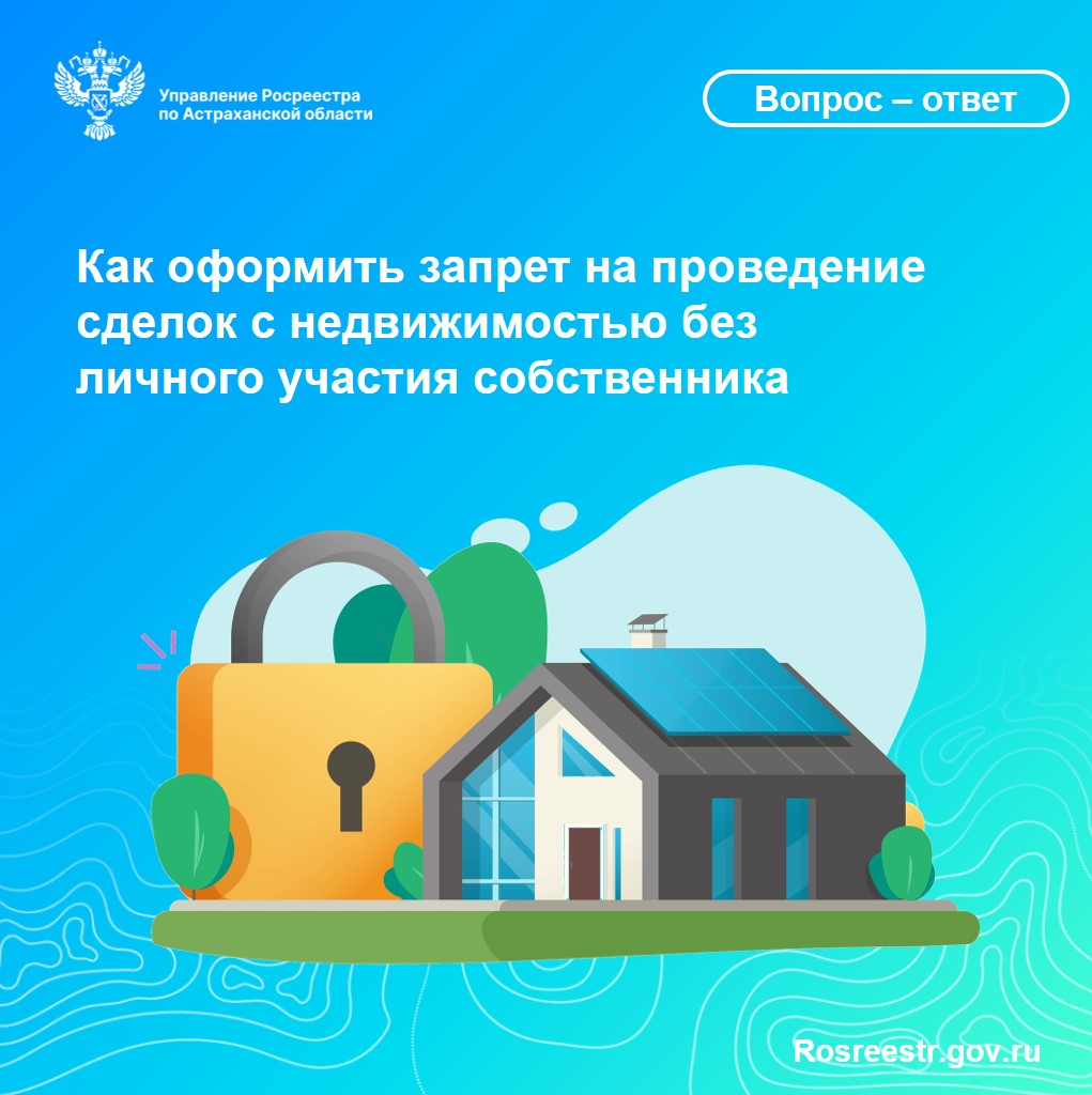 В рамках рубрики «Вопрос-ответ» Управление Росреестра и филиал публично-правовой компании «Роскадастр» по Астраханской области публикуют материалы, разъясняющие актуальные вопросы в сфере земли и недвижимости. Сегодня расскажем, как оформить запрет на проведение сделок с недвижимостью без личного участия собственника.
