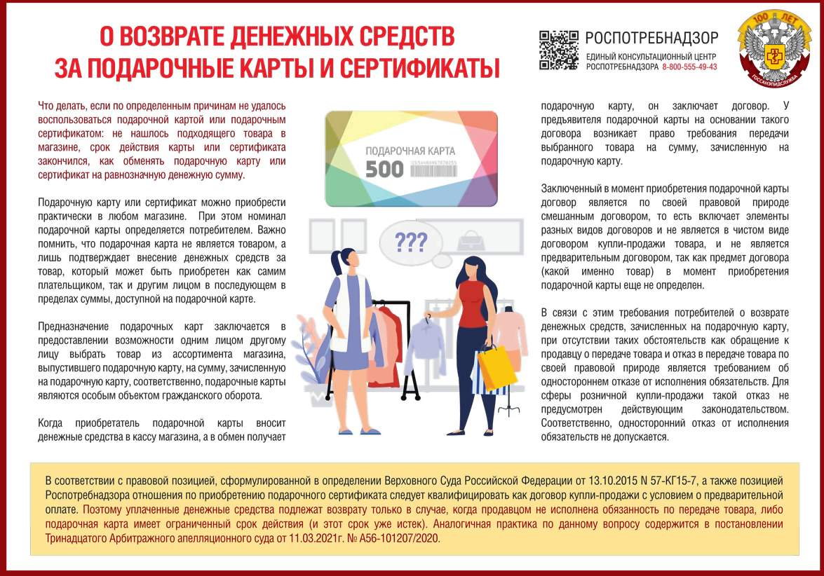 О ВОЗВРАТЕ ДЕНЕЖНЫХ СРЕДСТВ ЗА ПОДАРОЧНЫЕ КАРТЫ И СЕРТИФИКАТЫ