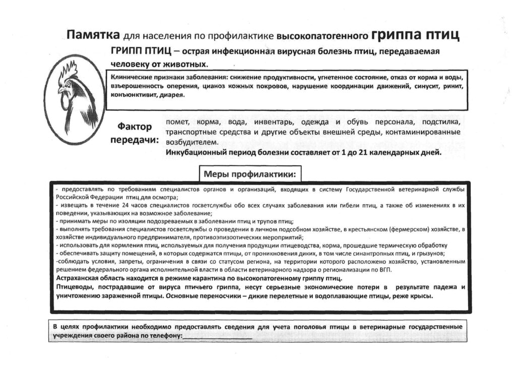 Памятка для населения по профилактике высокопатогенного ГРИППА ПТИЦ